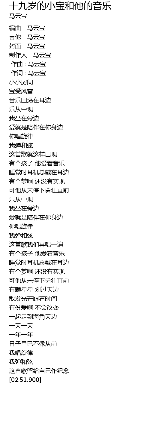 | Song | 十九岁的小宝和他的音乐 |