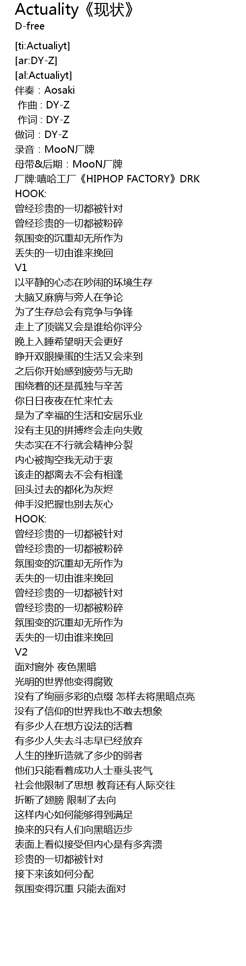| [00:09.72] | 厂牌:嘻哈工厂《HIPHOP FACTORY》DRK |