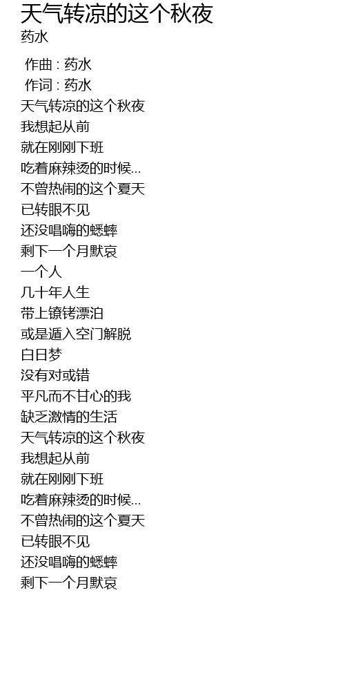 | [00:04.258] | 天气转凉的这个秋夜 |