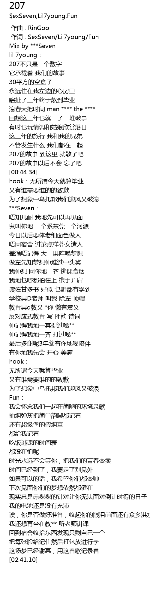 | [00:01.000] | 作词 : SexSeven/Lil7young/Fun |