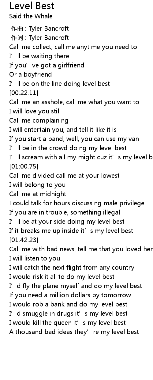 | [00:54.63] | I' ll scream with all my might cuz it' s my level best |