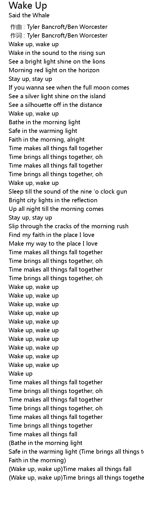 | [03:22.25] | (Wake up, wake up)Time brings all things together |