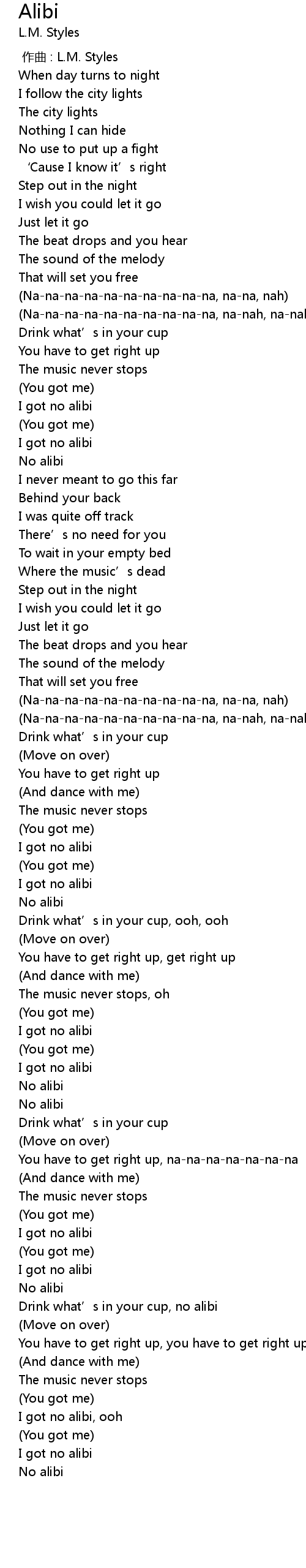 | [03:20.48] | No alibi |