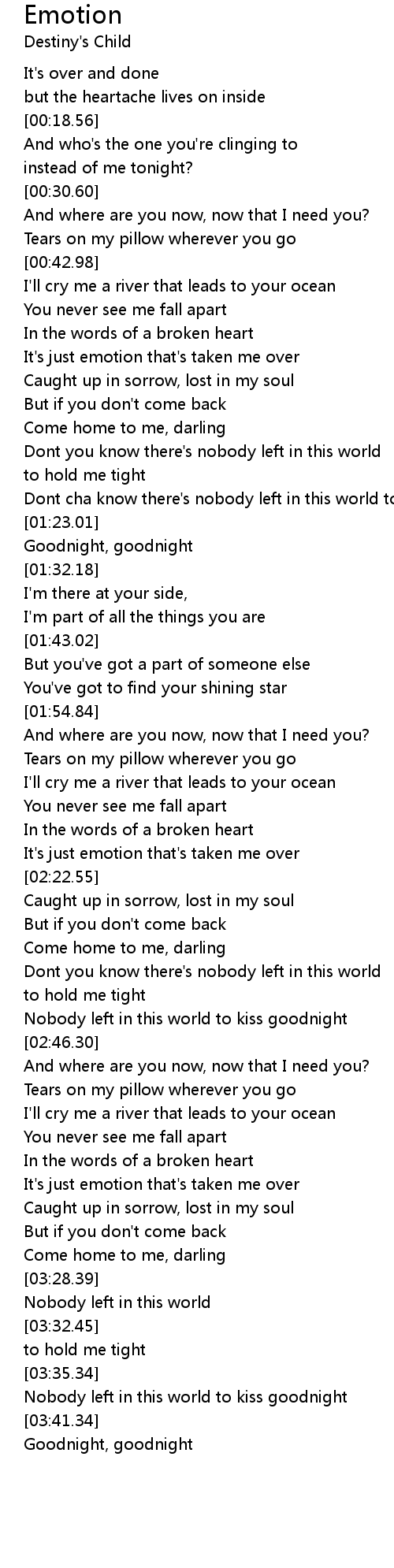 Dont cha know there's nobody left in this world to kiss goodnight |