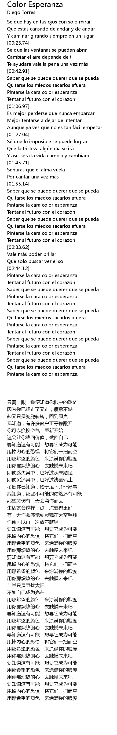 | [02:23.49] | Pintarse la cara color esperanza |