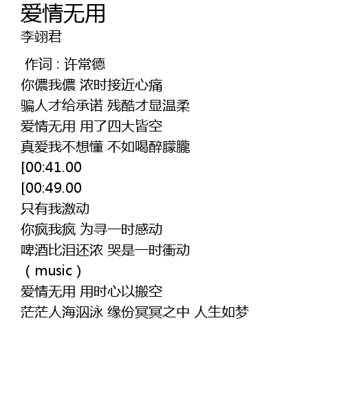 | [00:21.00] | 爱情无用 用了四大皆空 |