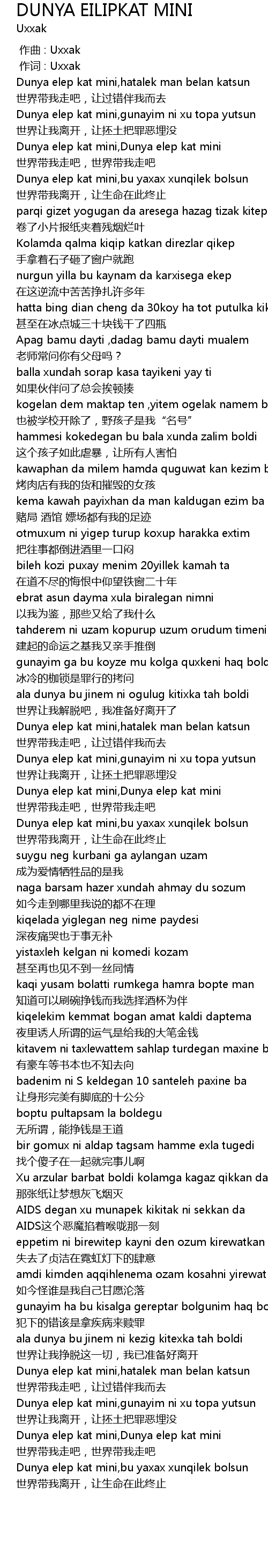 | [03:00.808] | Dunya elep kat mini, bu yaxax xunqilek bolsun |