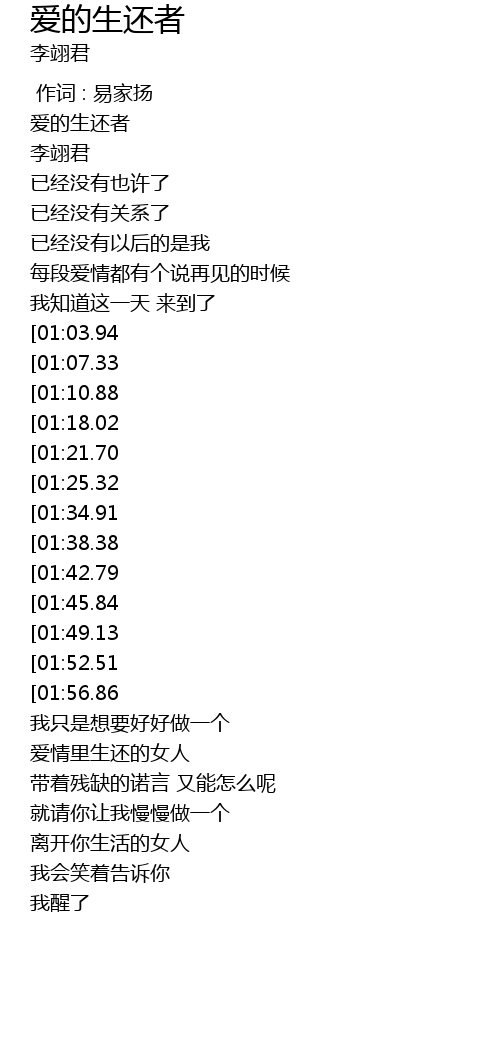 | [02:57.00][01:38.38] | 爱情里生还的女人 |