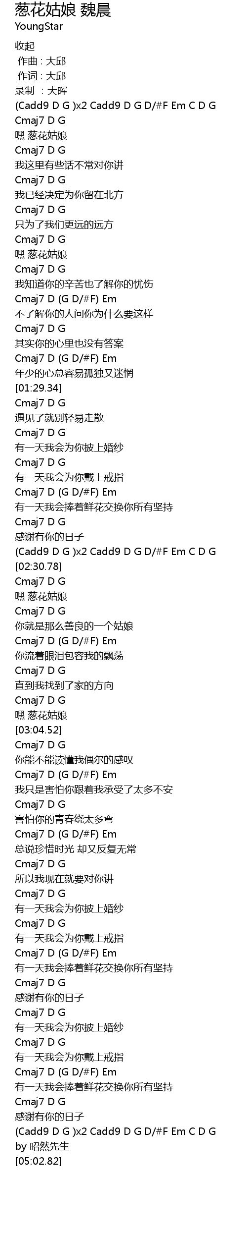 | [02:36.41] | 嘿 葱花姑娘 |