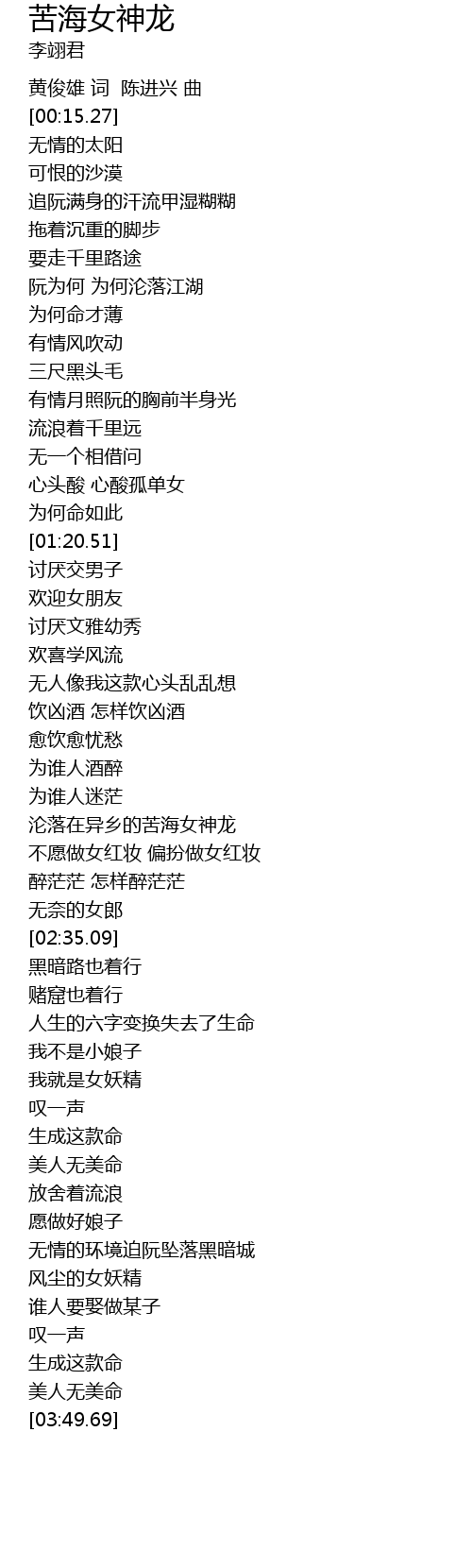 | [02:09.17] | 沦落在异乡的苦海女神龙 |