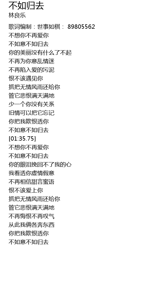 | [01:30.57] | bu ru yi bu ru gui qu |