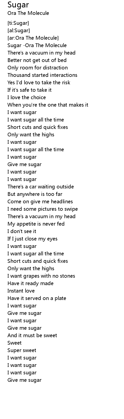 I want sugar all the time |