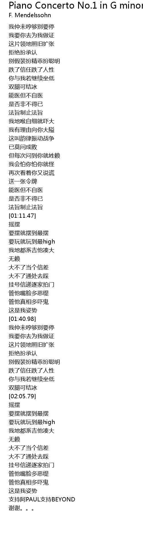 | [02:49.99] | 支持阿PAUL支持BEYOND |