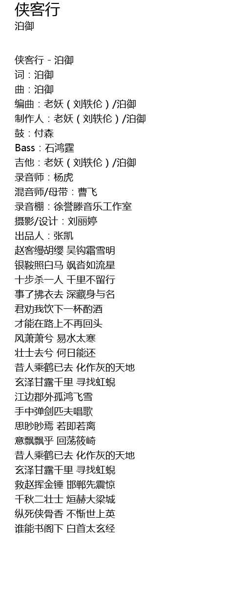 | 侠客行 - 泊御 | |
