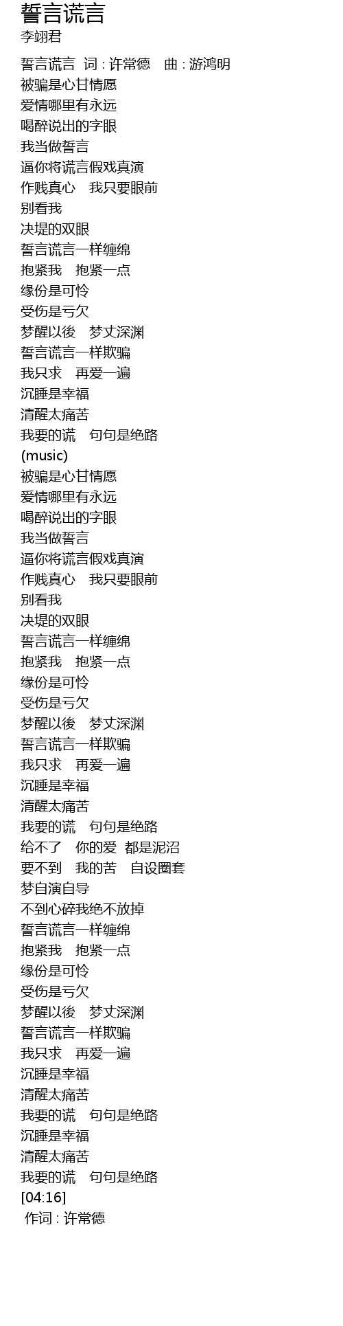 | [00:00] | 誓言谎言 词∶许常德 曲∶游鸿明 |