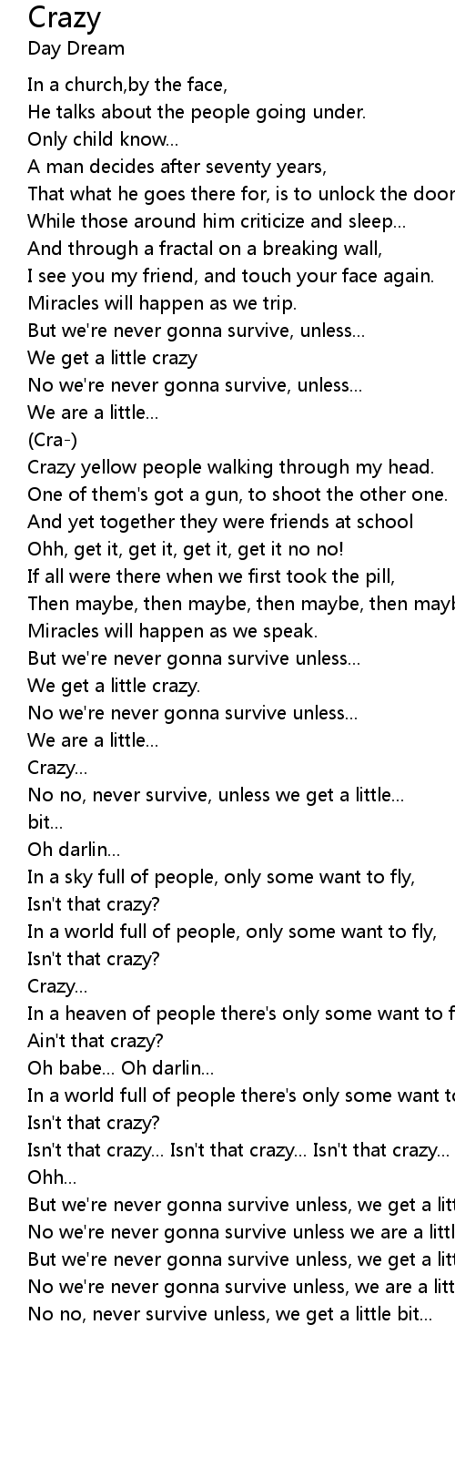 But we're never gonna survive unless, we get a little crazy.. crazy.. |