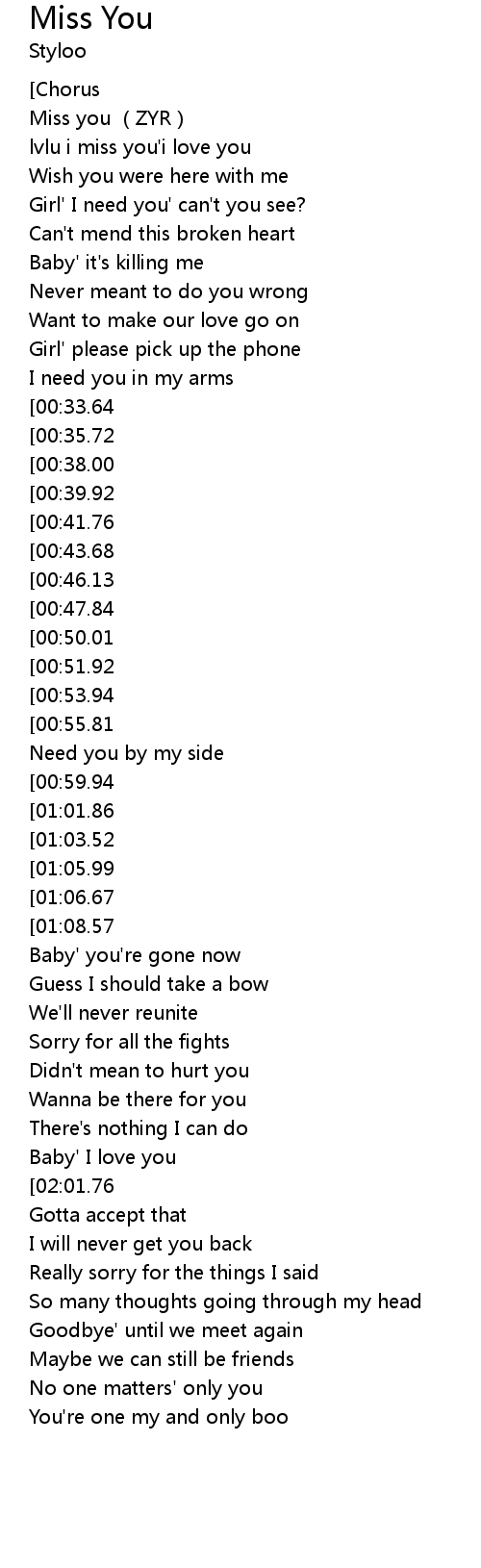 | [03:25.23][01:06.67] | Miss you |