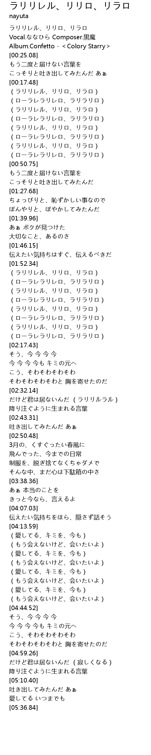 | [00:20.37] | ラリリレル、リリロ、リラロ |