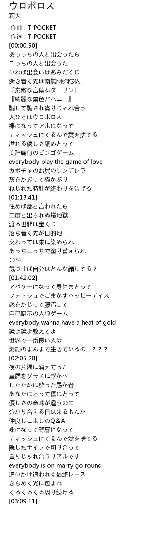 | [00:48.58] | 人ひとはウロボロス |
