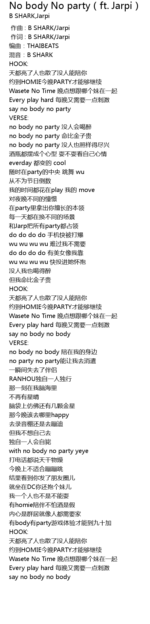 | [00:47.740] | no body no party 没人也照样得尽兴 |
