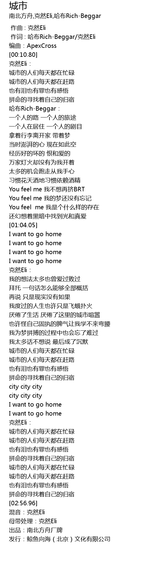 | [01:55.14] | 城市的人们每天都在赶路 |