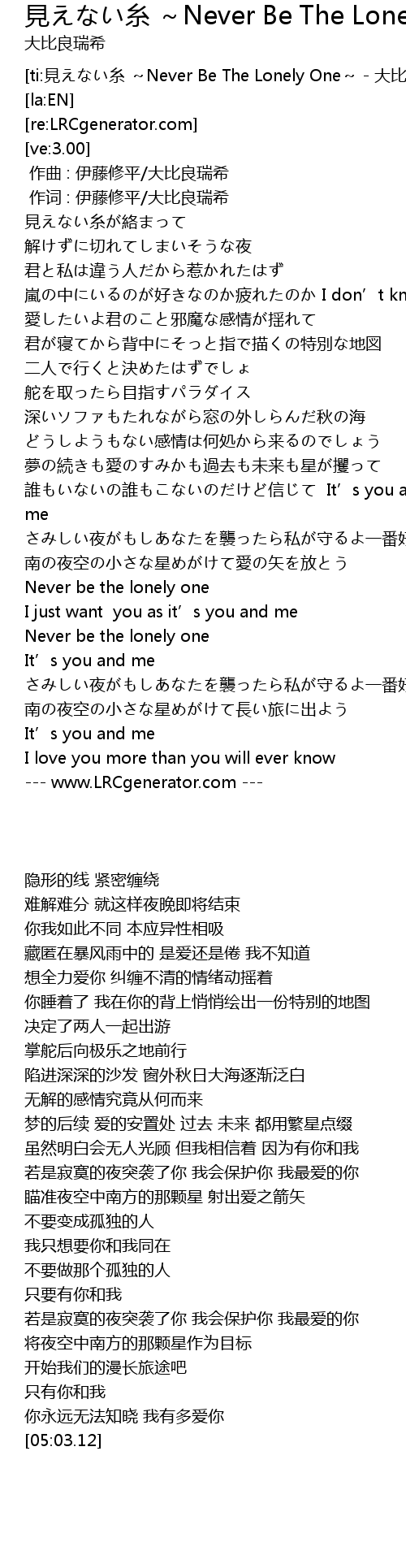 | [ti:見えない糸 ~Never Be The Lonely One~ - 大比良瑞希] | |