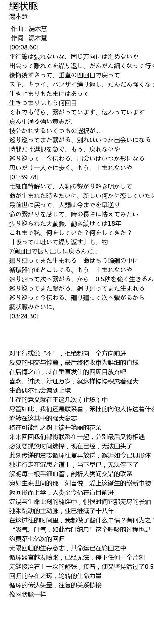 | [01:56.47] | 毛細血管解いて、人類の繋がり解き明かして |