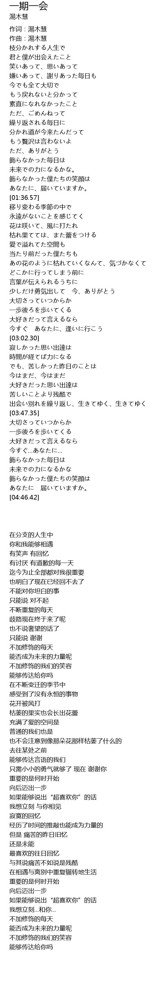| [03:38.40] | 出会い別れを繰り返し、生きてゆく、生きてゆく |