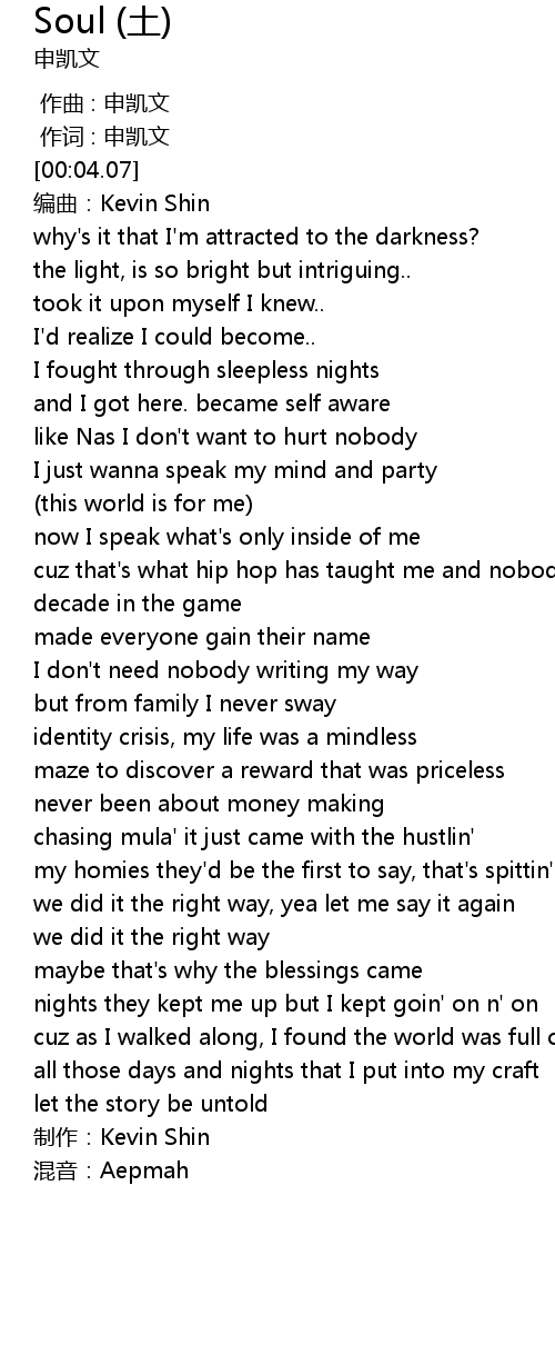 | [00:04.88] | biān qǔ: Kevin Shin |