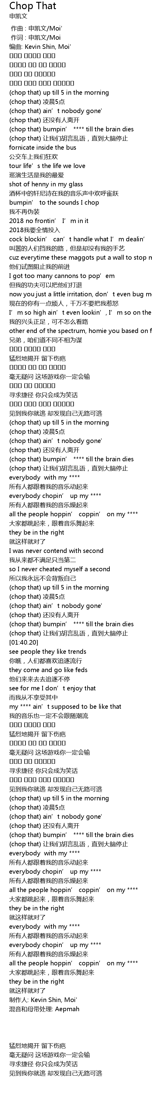 | [02:23.18] | everybody chopin’ up my **** |