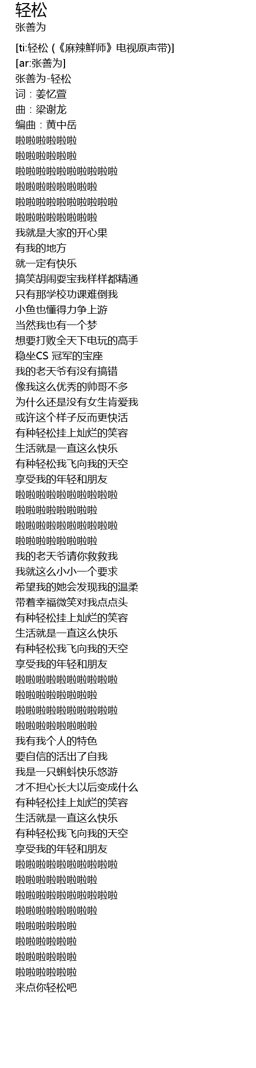 | [ti:轻松 (《麻辣鲜师》电视原声带)] | |