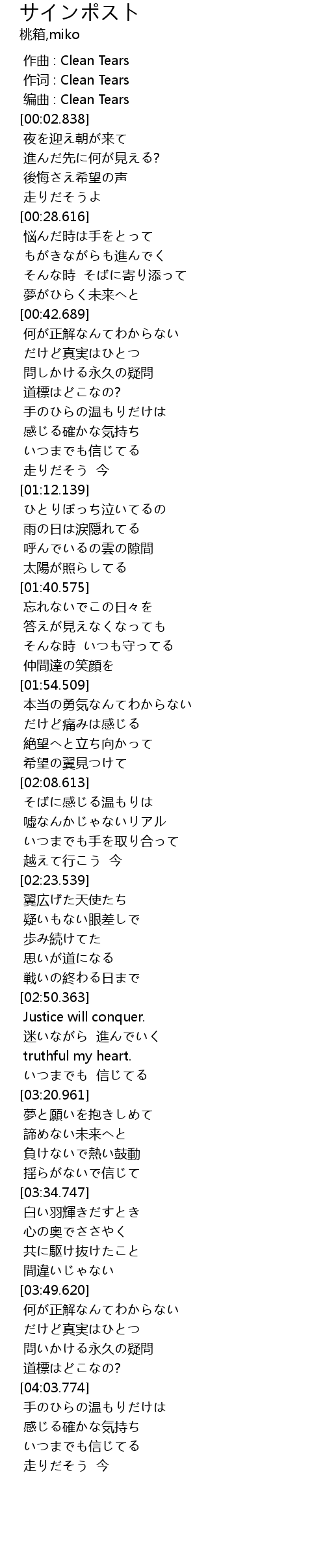 作词 : Clean Tears |