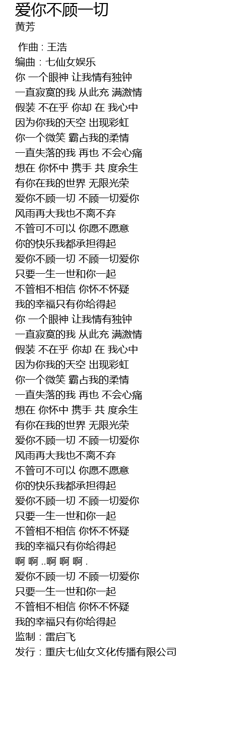 | [02:58.09] | ài nǐ bù gù yī qiè bù gù yī qiè ài nǐ |