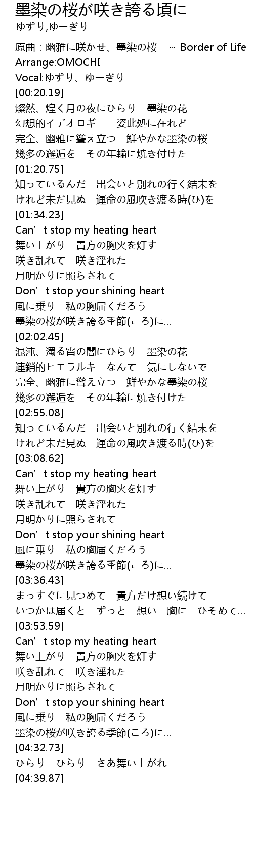 | [00:05.19] | 原曲:幽雅に咲かせ、墨染の桜 ~ Border of Life |