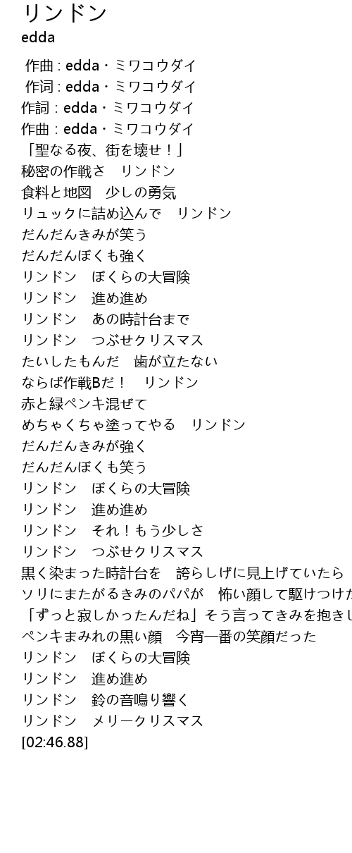 | [00:02.78] | 作詞:edda・ミワコウダイ |