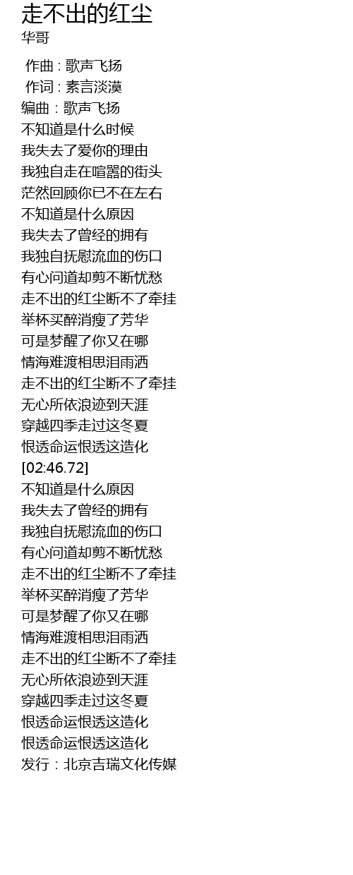 | [04:23.61] | 发行:北京吉瑞文化传媒 |