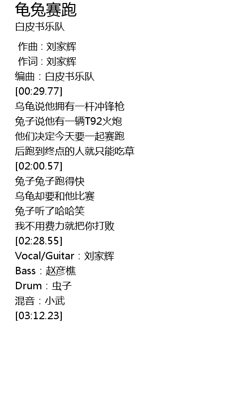 | [03:11.65] | Vocal/Guitar:刘家辉 |