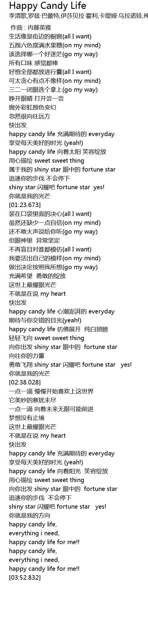| [00:53.592] | happy candy life chōng mǎn qī dài de everyday |