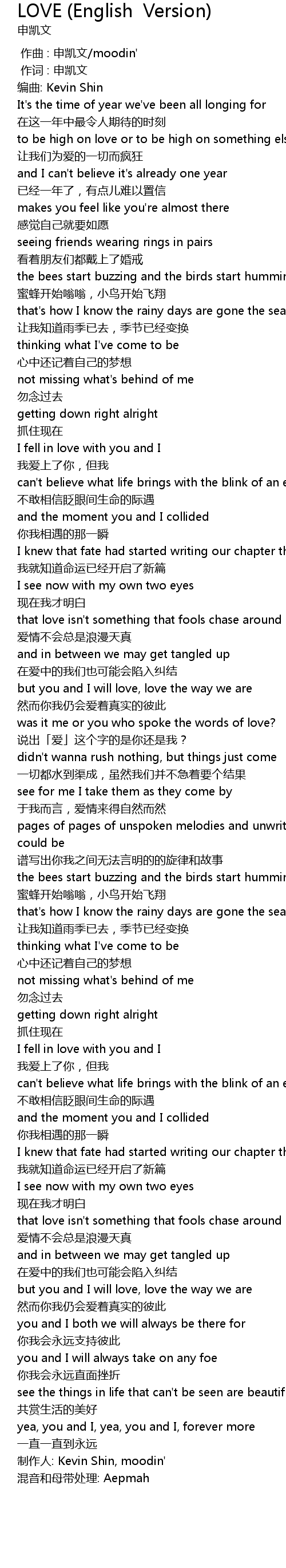 | [00:13.17] | biān qǔ: Kevin Shin |