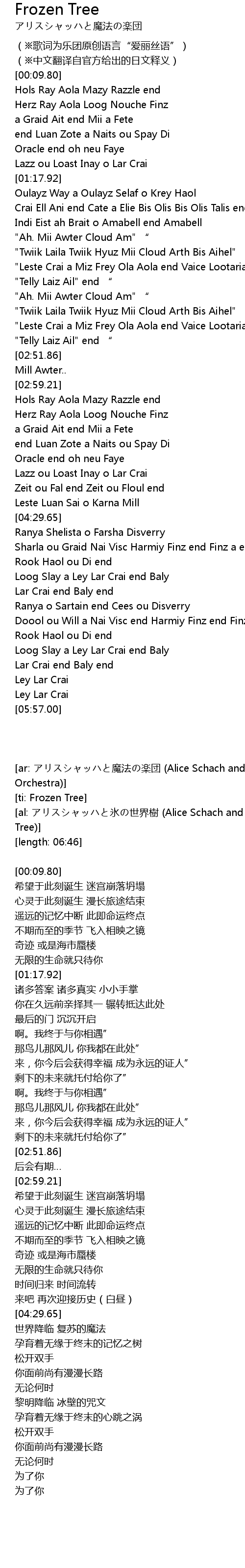 | [00:00.00] | (※歌词为乐团原创语言“爱丽丝语”) |