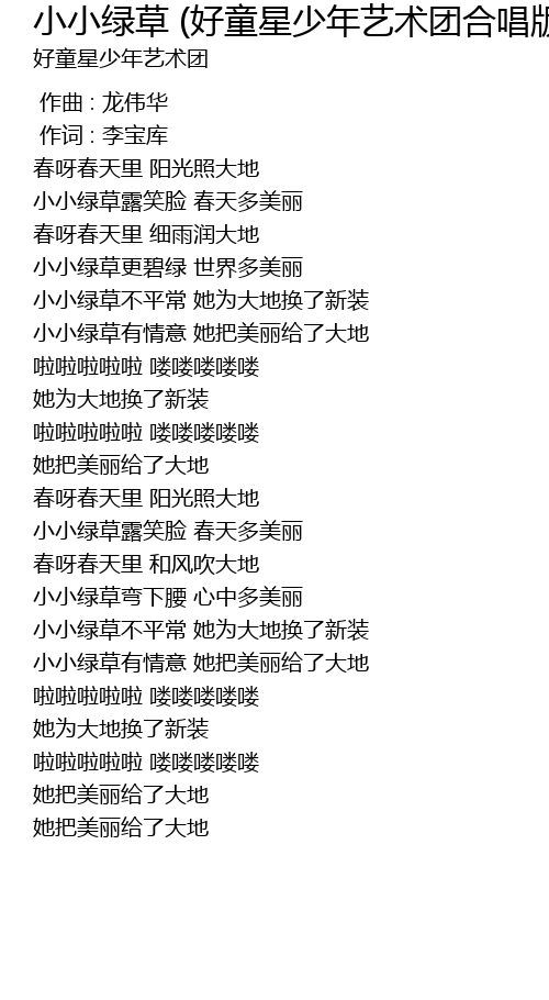 | Song | 小小绿草 (好童星少年艺术团合唱版) |