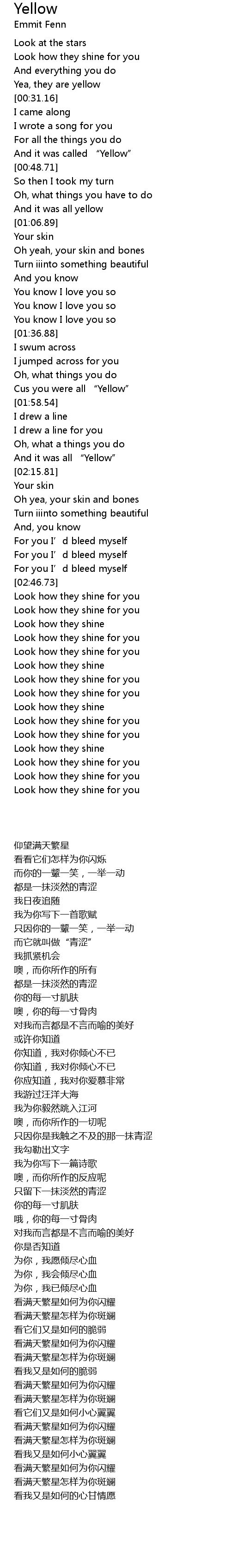 | [00:46.23] | And it was called " Yellow" |