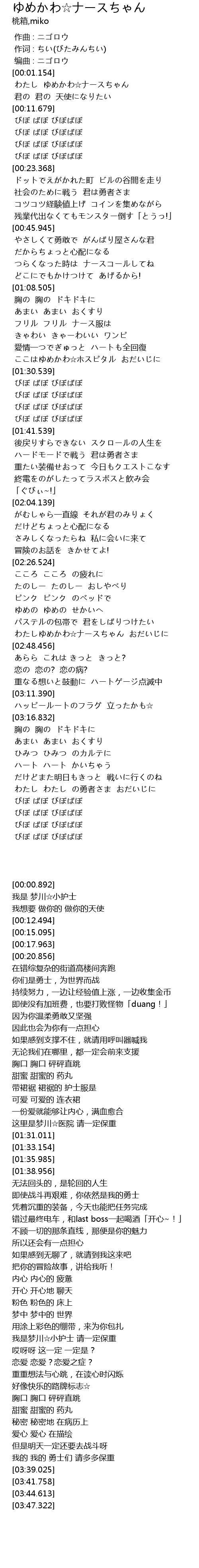 | [00:01.495] | わたし ゆめかわ☆ナースちゃん |