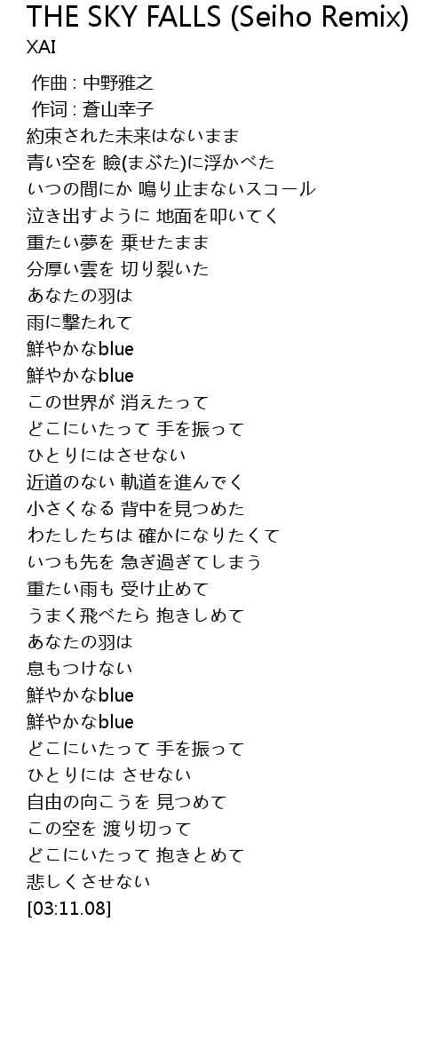 | [00:08.42] | 青い空を 瞼(まぶた)に浮かべた |