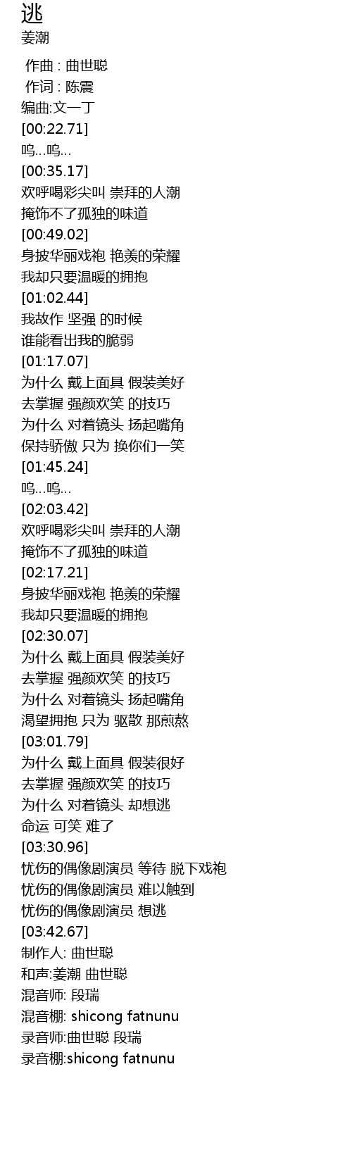 | [03:44.65] | 和声:姜潮 曲世聪 |