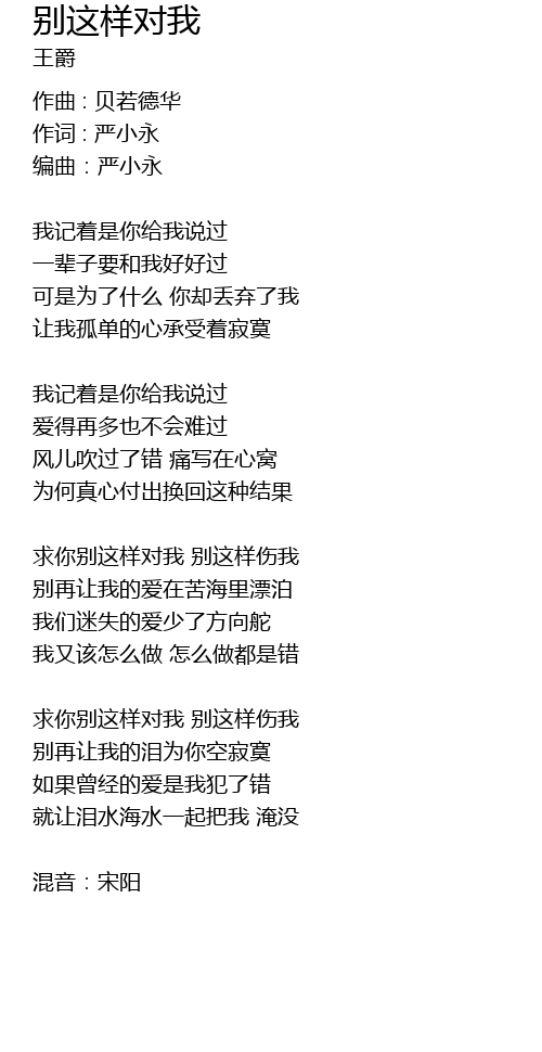 | qiú nǐ bié zhè yàng duì wǒ bié zhè yàng shāng wǒ | |
