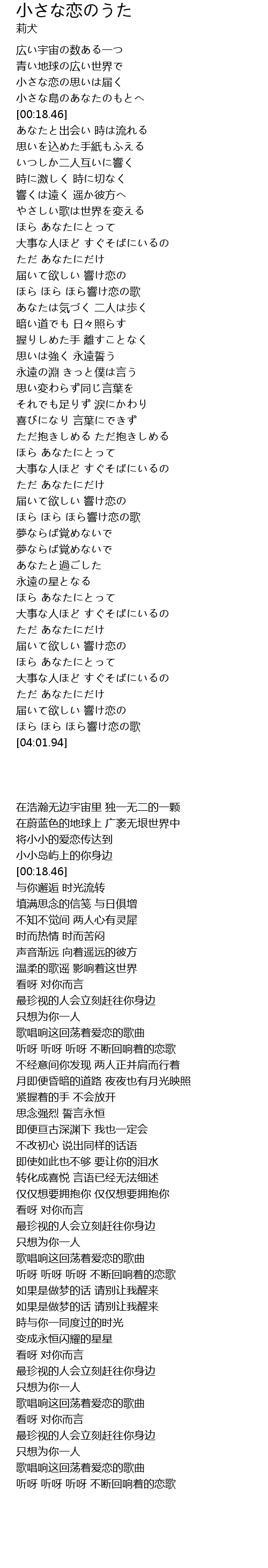 | [00:13.38] | 小さな島のあなたのもとへ |