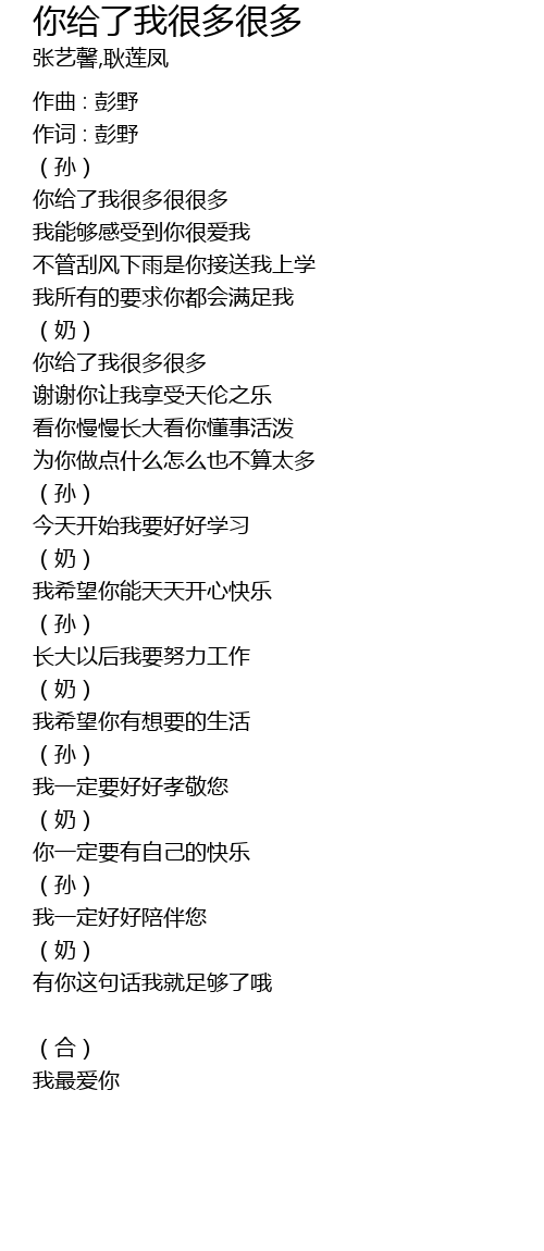 | nǐ gěi le wǒ hěn duō hěn duō | |