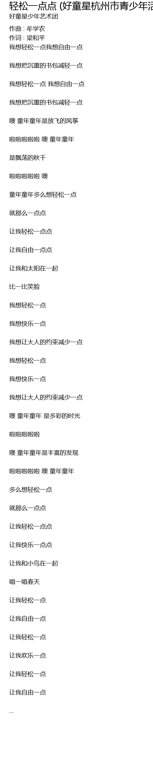 | Song | 轻松一点点 (好童星杭州市青少年活动中心西湖少儿合唱团版) |