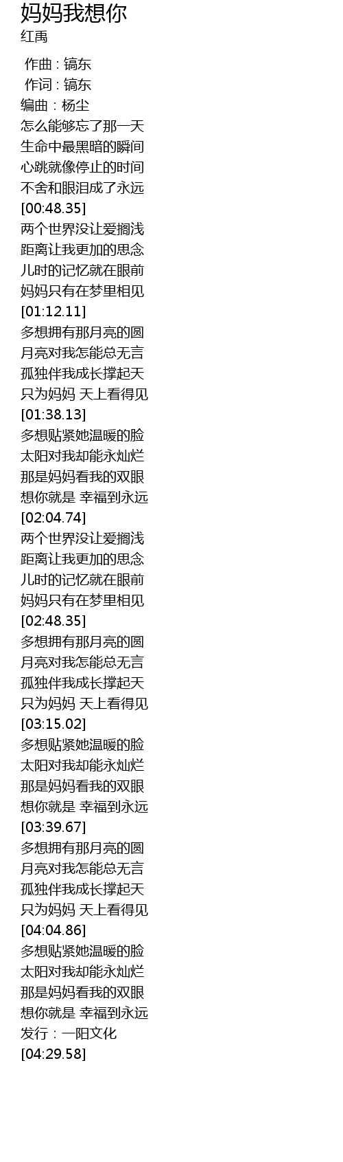 | [01:33.02] | 只为妈妈 天上看得见 |